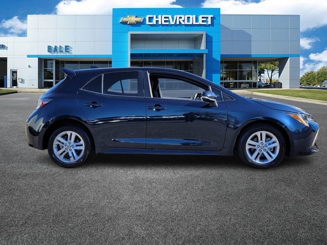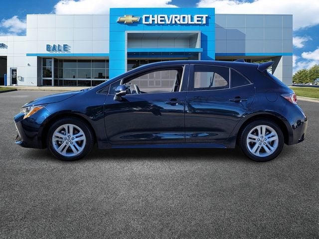 Bale Chevrolet is delighted to offer this terrific 2021 Toyota Corolla Hatchback SE in Blue Flame Beautifully equipped with Corolla Hatchback SE, 2.0L I4, CVT, FWD, Blue Flame, Black w/Fabric Upholstery, Alloy wheels, Split folding rear seat, 4-Wheel Disc Brakes, 6 Speakers, ABS brakes, Air Conditioning, AM/FM radio: SiriusXM, Apple CarPlay/Android Auto, Auto High-beam Headlights, Automatic temperature control, Blind Spot Monitor (BSM), Brake assist, Bumpers: body-color, Compass, Cruise Control, Delay-off headlights, Driver door bin, Driver vanity mirror, Dual front impact airbags, Dual front side impact airbags, Electronic Stability Control, Emergency communication system: Safety Connect with 1-year trial, Exterior Parking Camera Rear, Fabric Upholstery, Four wheel independent suspension, Front anti-roll bar, Front Bucket Seats, Front Center Armrest, Front reading lights, Heated door mirrors, Illuminated entry, Knee airbag, Leather Shift Knob, Low tire pressure warning, Occupant sensing airbag, Outside temperature display, Overhead airbag, Overhead console, Panic alarm, Passenger door bin, Passenger vanity mirror, Power door mirrors, Power steering, Power windows, Radio data system, Radio: Audio, Radio: Audio Plus, Rear anti-roll bar, Rear seat center armrest, Rear side impact airbag, Rear window defroster, Rear window wiper, Remote keyless entry, Security system, Speed-sensing steering, Spoiler, Sport Front Seats, Steering wheel mounted audio controls, Tachometer, Telescoping steering wheel, Tilt steering wheel, Traction control, Trip computer, Turn signal indicator mirrors, and Variably intermittent wipers!Clean CARFAX.